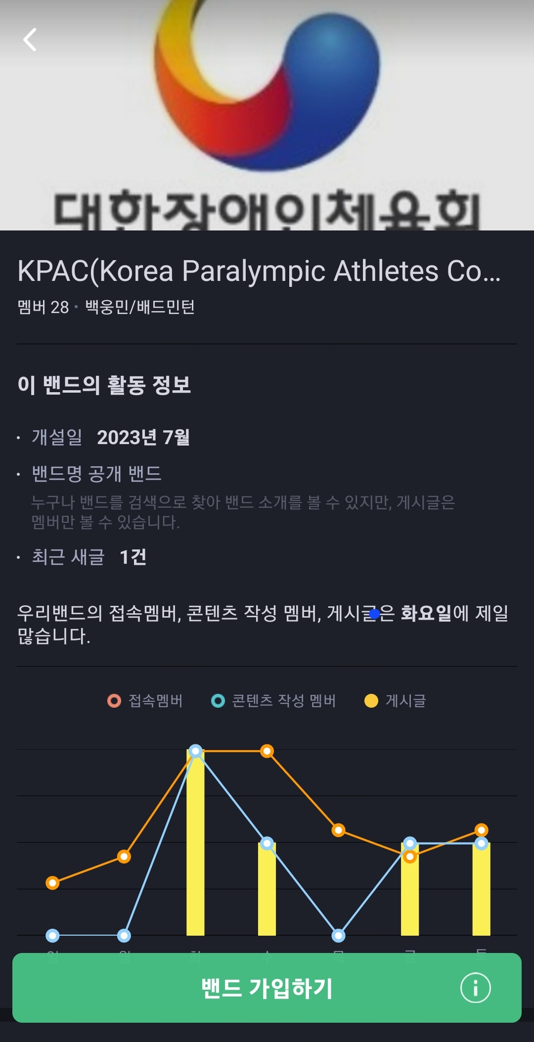 □ 내용: 대한장애인체육회 선수위원회 밴드 KPAC(Korea Paralympic Athletes Committee) 개설
