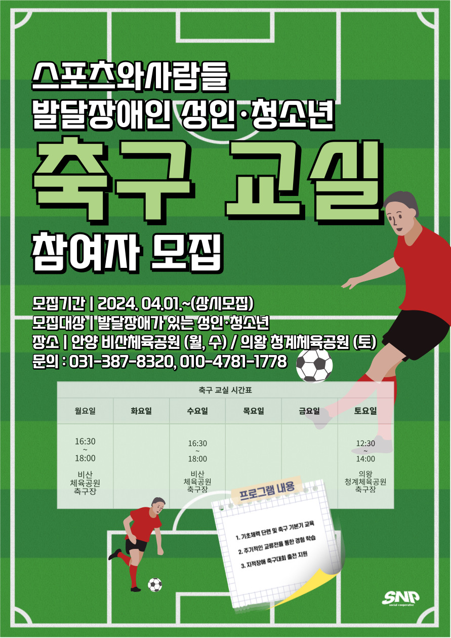 스포츠와사람들 사회적협동조합 사무국: 031-387-8320